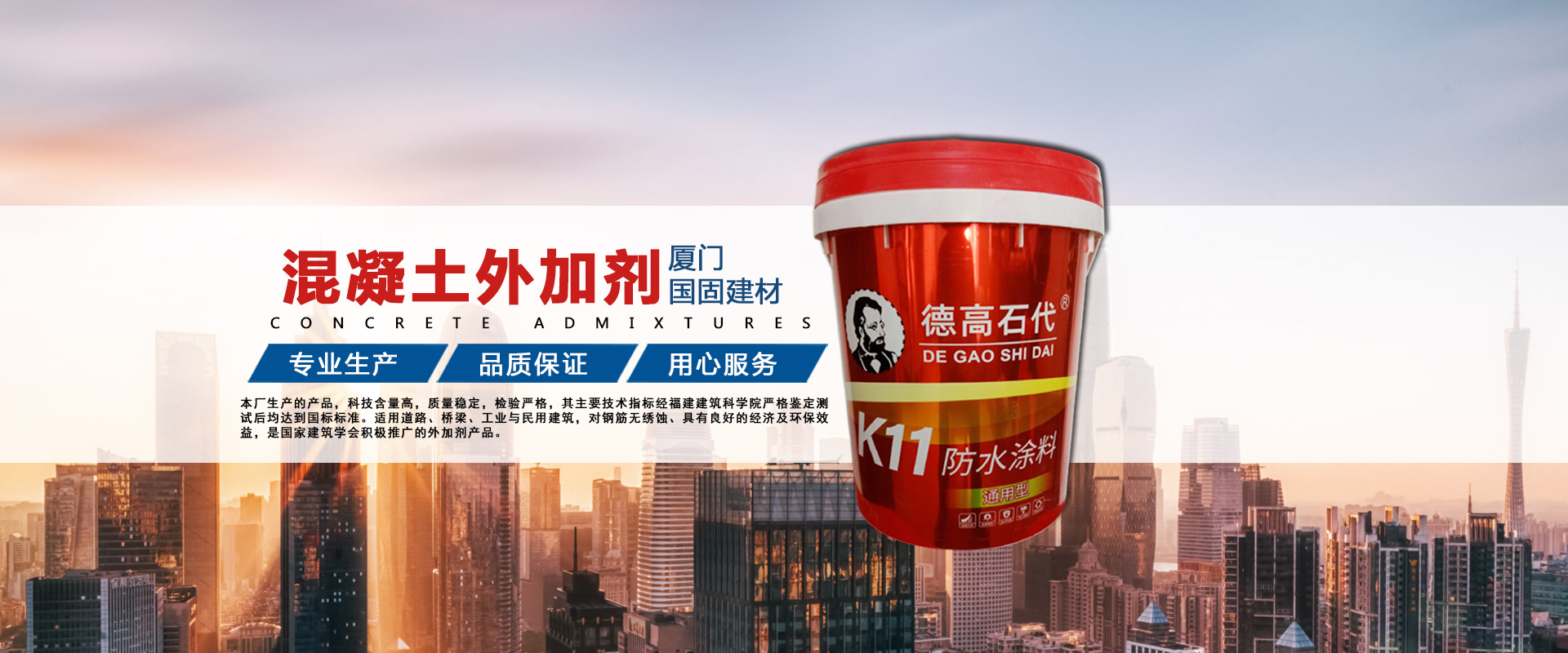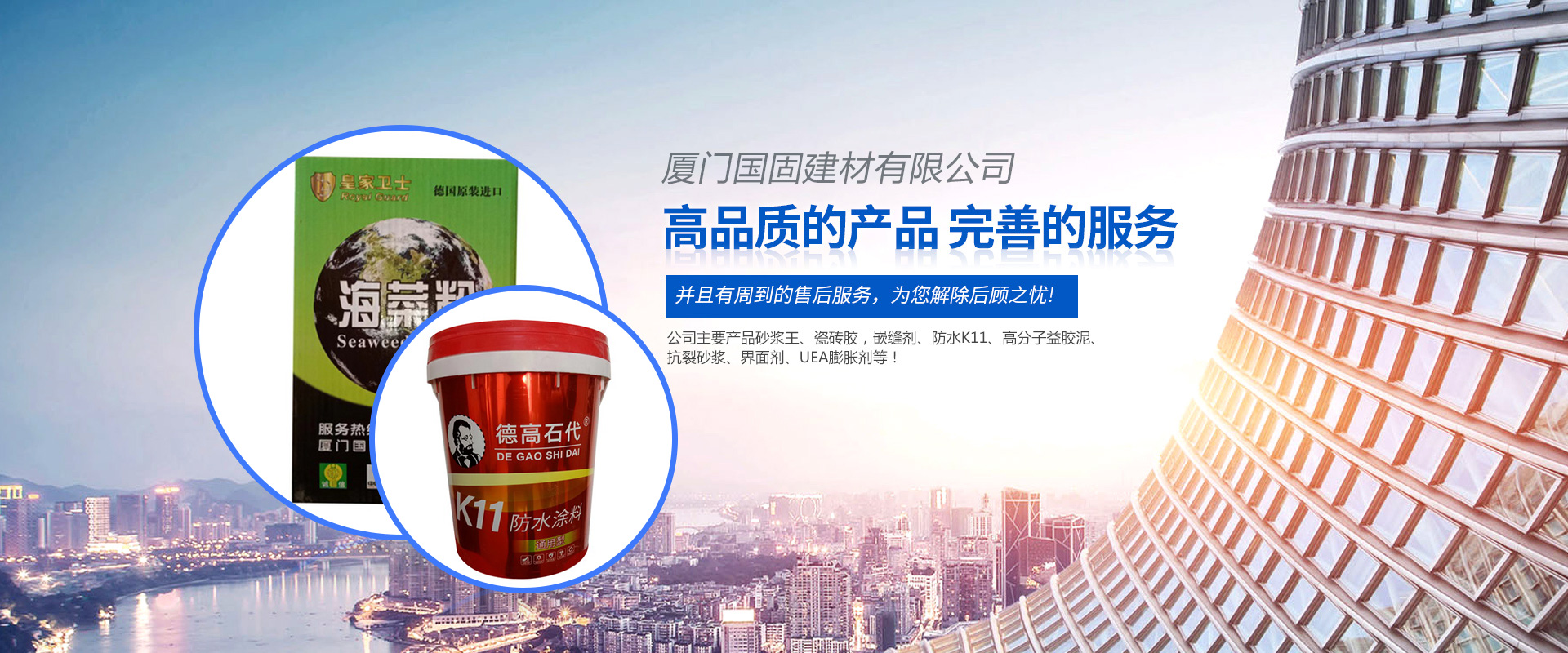 ??廈門國固建材有限公司是集科研開發(fā),生產(chǎn)為一體的混凝土外加劑科技生產(chǎn)單位,公司技術力量雄厚,工藝科學先進,產(chǎn)品質(zhì)量及性能在全國同行業(yè)中。并且有周到的售后服務,為您解除后顧之憂。本廠生產(chǎn)的產(chǎn)品,科技含量高,質(zhì)量穩(wěn)定,檢驗嚴格,其主要技術指標經(jīng)福建建筑科學院嚴格鑒定測試后均達到國標標準。是目前水泥制品中理想的名加劑產(chǎn)品,適用道路、橋梁、工業(yè)與民用建筑,對鋼筋無繡蝕、具有良好的經(jīng)濟及環(huán)保效益,是國家建筑學會積極推廣的外加劑產(chǎn)品。本廠推廣標準化,規(guī)范化、程序化管理、具有健全、完善、持續(xù)穩(wěn)定運行的質(zhì)量保證體系。產(chǎn)品遠銷上海、江蘇、浙江、廣州、北京、江西、安徽、福建等地,在大批國家建設工程中應用效果良好,并以性能優(yōu)越、質(zhì)量可靠、以及良好的售后服務在市場上享有很高的信譽。本廠在今后的歷程中,將一如既往的為您提供高質(zhì)量、高科技的產(chǎn)品,完善的服務以感謝廣大客戶的支持和厚愛。“科技創(chuàng)新、以誠為本,用戶滿意”是我公司發(fā)展的永恒目標,我們堅持“以誠結(jié)情、質(zhì)量取勝”,以高品質(zhì)的產(chǎn)品回報社會。“用科興建材,創(chuàng)優(yōu)品工程”,期待與各界朋友與時俱進,努力開拓進取,力求為用戶提供“高品質(zhì)的產(chǎn)品,完善的服務”。公司愿與設計部門、建設單位、施工企業(yè)及同行們攜手合作,共創(chuàng)未來,共鑄輝煌、公司主要產(chǎn)品砂漿王、瓷磚膠,嵌縫劑、防水K11、高分子益膠泥、抗裂砂漿、界面劑、UEA膨脹劑等!